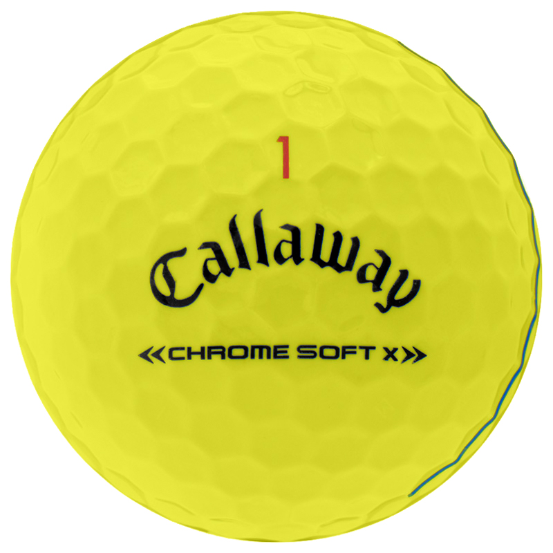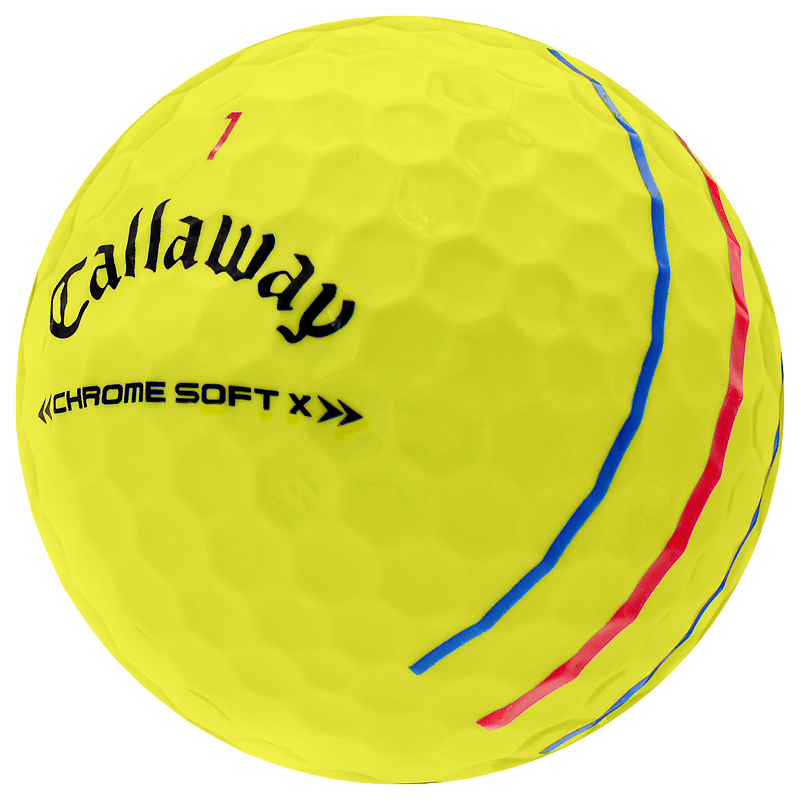 Callaway Chrome Soft X Triple Track prominently features Triple Track lines on the ball for improved putting accuracy. Triple Track uses Vernier Visual Acuity to improve alignment compared to a regular side stamp alignment aid.