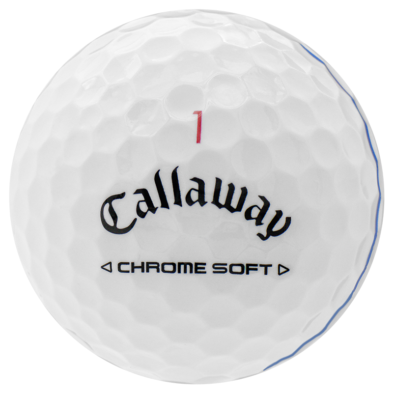 Callaway Chrome Soft features Triple Track lines on the ball for improved putting accuracy. This ball has low spin off the driver for long distance and has a SoftFast Core with a Tour Urethane Cover. If you are looking for distance with the softest feel, best forgiveness and straight flight around the greens the Chrome Soft Triple Track would be an option for you!