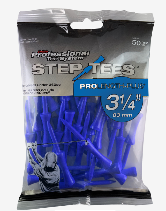 Pride Professional Tee System (PTS) Step Tees allow golfers to place their tee at a consistent height, while using the proprietary color coded system to fit the right tees with the right club, every time. Colors may vary.